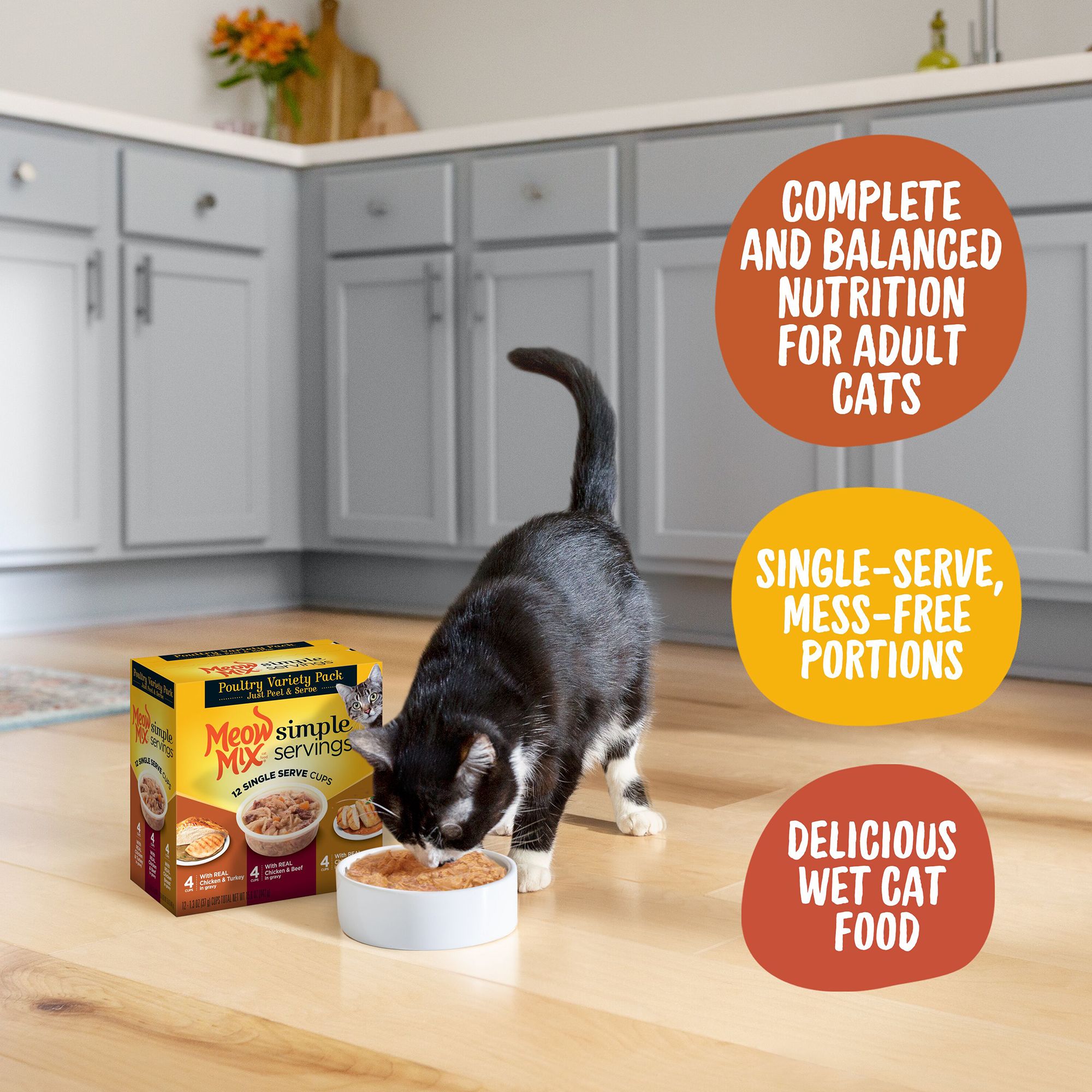Up to 2 cash back Available in bags and cans Meow Mix offers something for every cat.
